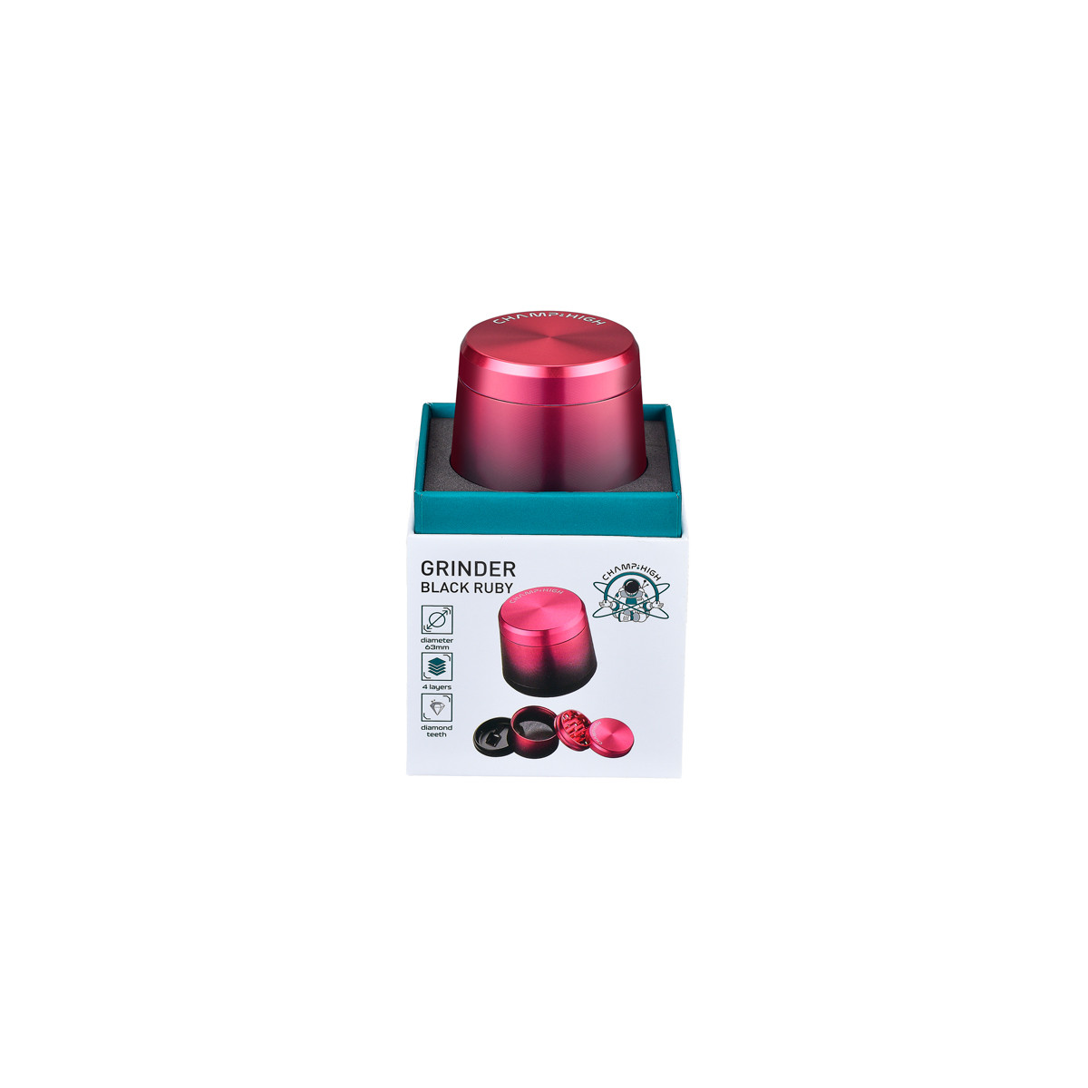 GRINDER METALICO CHAMP BLACK RUBY 4 PARTES 6,3 CM. 1X1