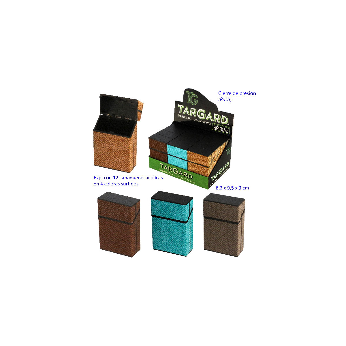 PITILLERA CAJETILLA SLIM DIAMANTES PUSH EASY 11 X 6 CM COLOR SURTIDO 1X12